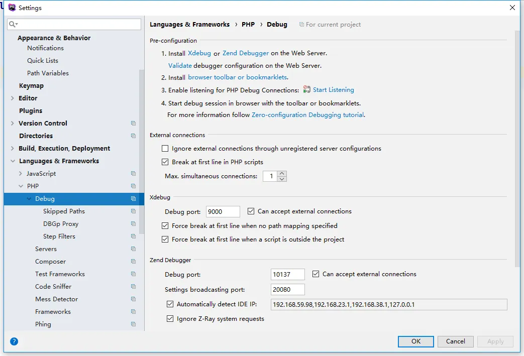 xdebug.idekey = PHPSTORMphpstorm的设置
