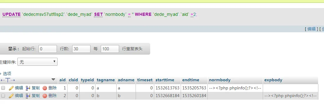 dede\ad_add.php,代码可以读一遍,插入数据库的时候并没有对危险函数进行处理。