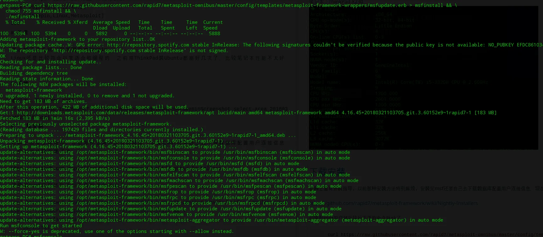 官网上面有安装指导,以前那种安装方法特别麻烦,安装完msf还要自己去下载数据库配置用户连接信息,现在就比较方便了哈。