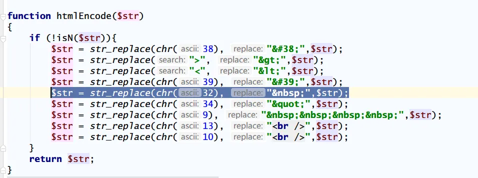 还记得我们chkSql方法吗?先是执行urldecode解码,然后StopAttack匹配,最后htmlEncode编码,最后Be方法那里 还有一个addslashes函数过滤,所以会导致后面的\转义成\\。htmlEncode又会对前面的空格转义成 。