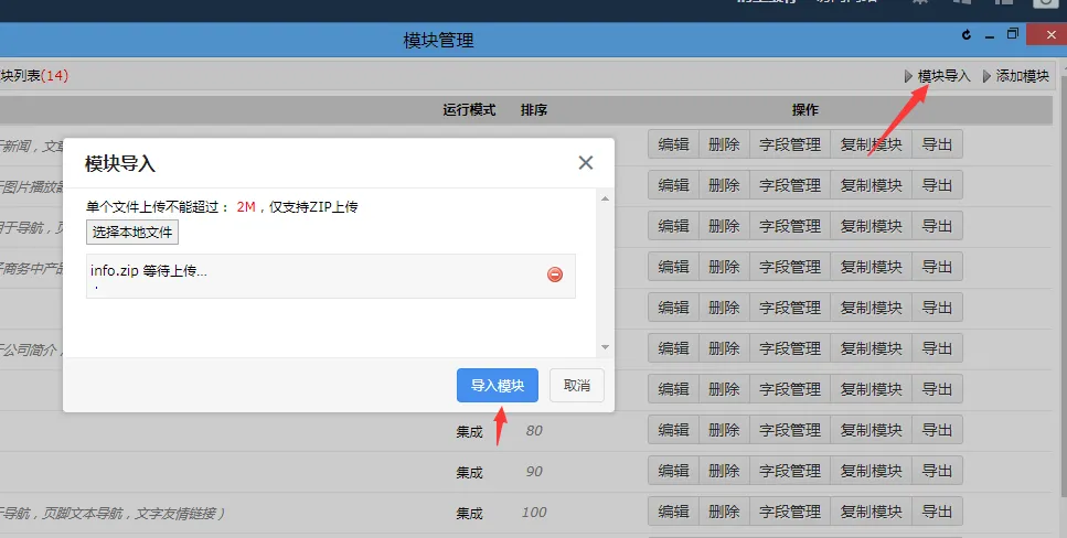 $this->error(P_Lang('模块导入失败,保存模块基本信息错误'));