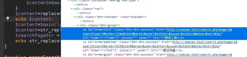 search.php里面的echoSearchPage()函数。 第一句是把这些变量设置为全局变量,方便下面来传值。 第二句是判断$order是否为空,如果为空就把time赋值给$order。