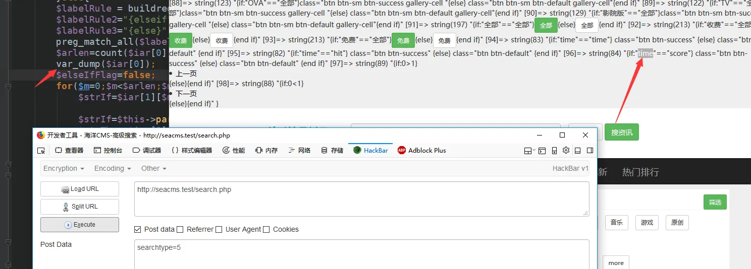 @eval("if(".$strIf."){\$ifFlag=true;}else{\$ifFlag=false;}");里面的$strIf变量也就是数组$iar[1]数组$iar[1]里面的内容。我们继续输出一下这个数组里面的内容。