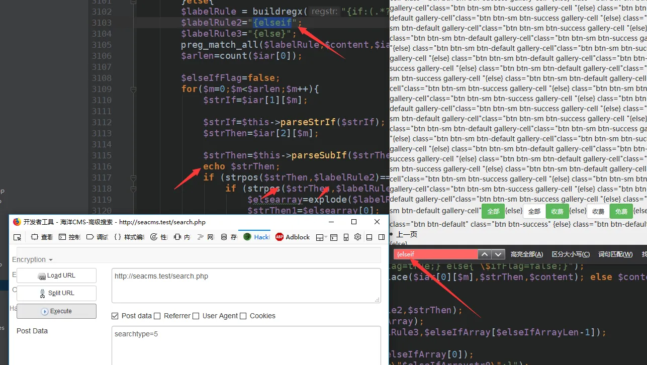 parseIf这个函数,在此之前我们可以先用echo来输出一下$content的内容,下面是对比图: