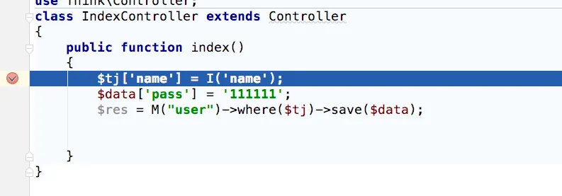 thinkphp/Application/Home/Controller/IndexController.class.php在里面写一个简单的update的例子: