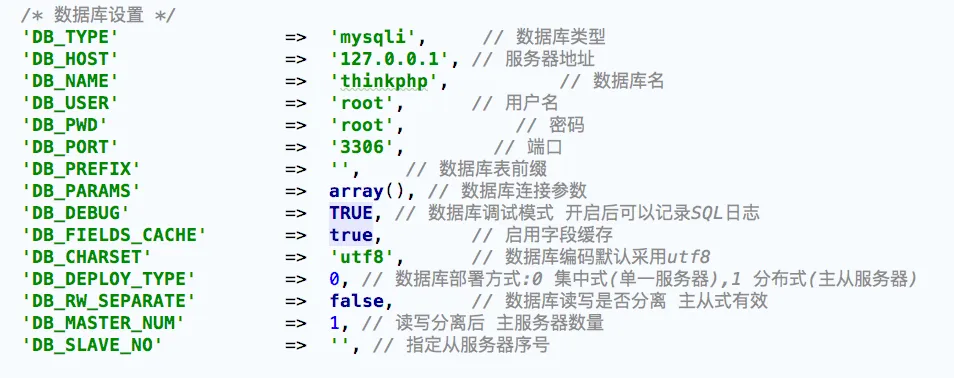 thinkphp/ThinkPHP/Conf/convention.php在这里面填上我们刚才建立的数据库信息: