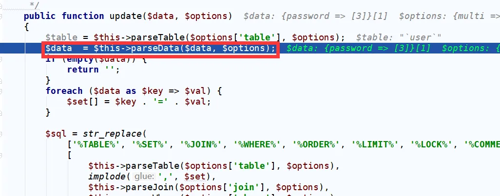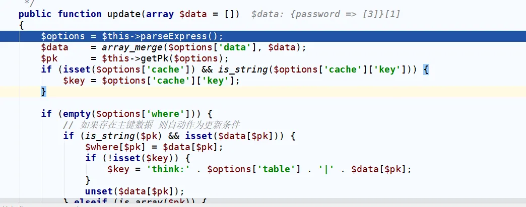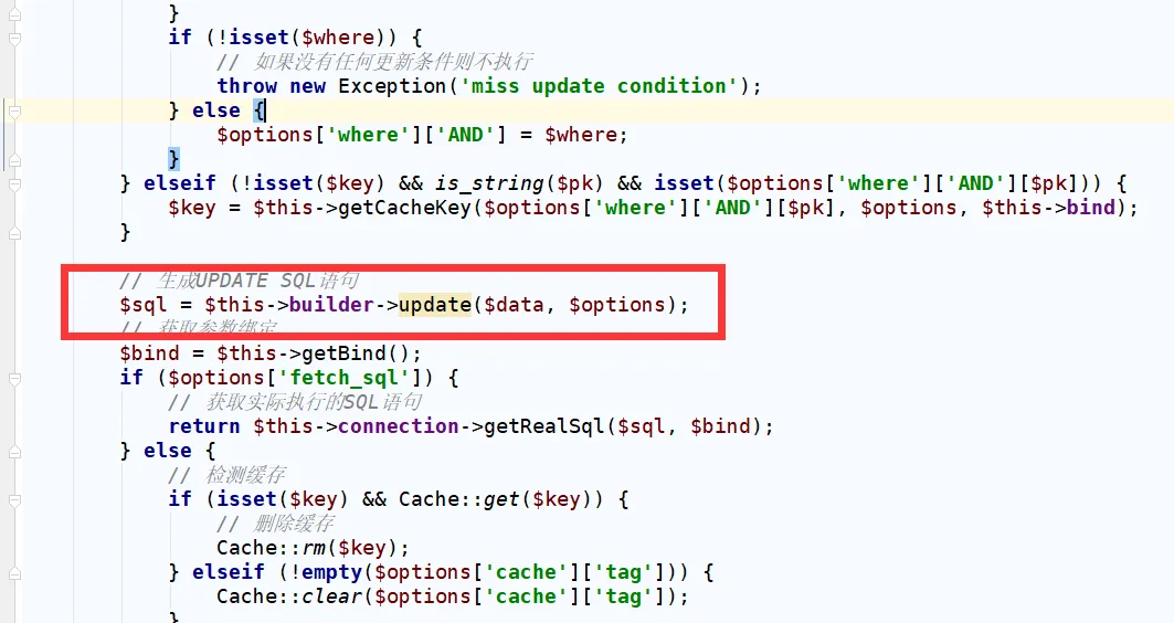 3. 我们跳到update执行的部分,文件位置:\thinkphp\library\think\db\Query.php