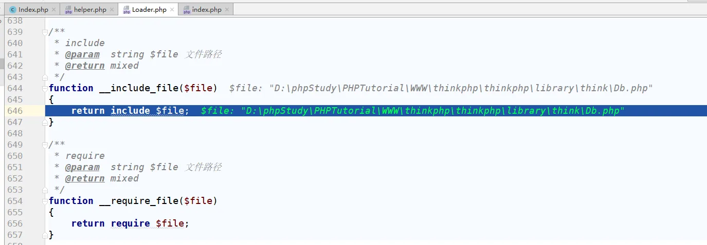 2. 我们继续跟进到loader.php它会包含thinkphp的Db.php文件,