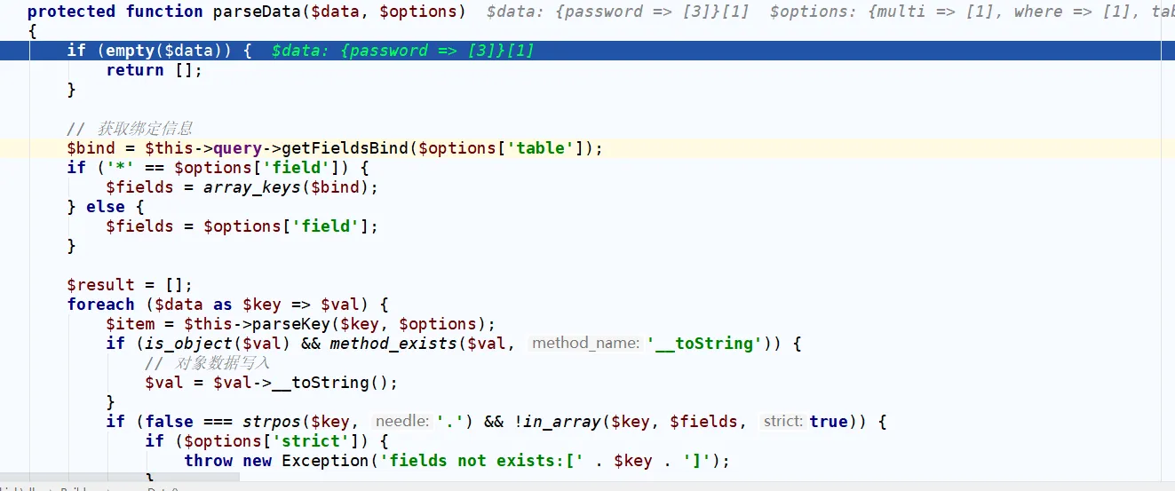 parseTable函数直接F8往下执行了,这函数是处理table分析的,主要还是parseData函数,我们继续F7跟进