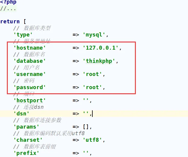- 在thinkphp的数据库文件填上刚才我们建立的数据库信息: