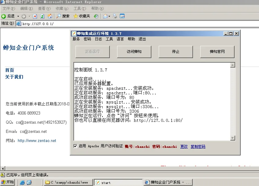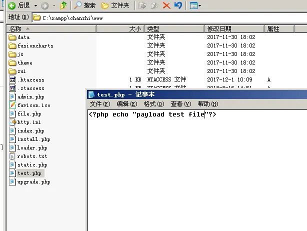 C:\xampp\chanzhi\www新建一个测试文件test.php