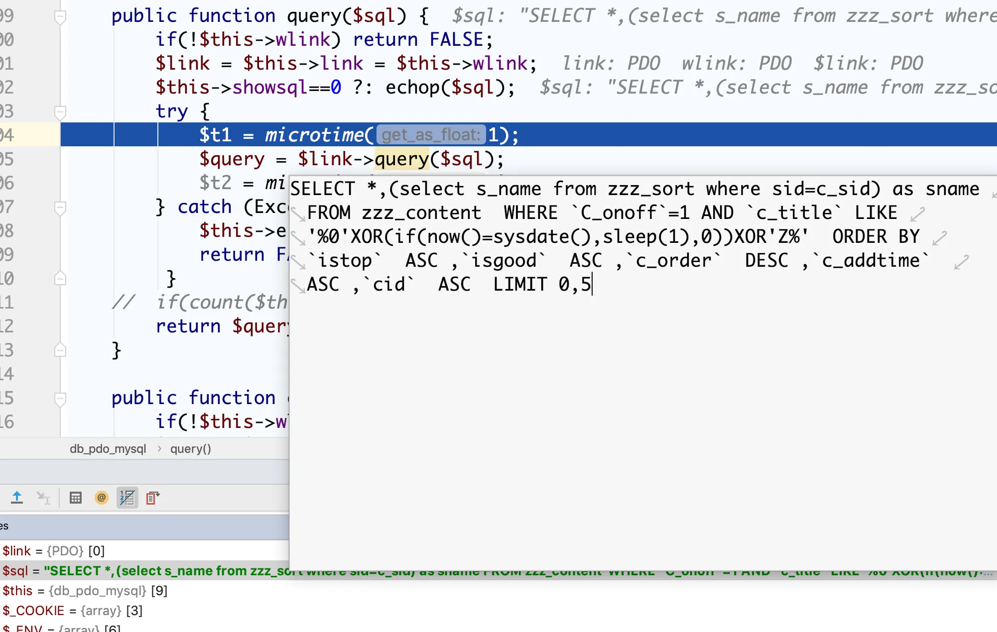 }下面就是直接执行了我们带有恶意的SQL语句了