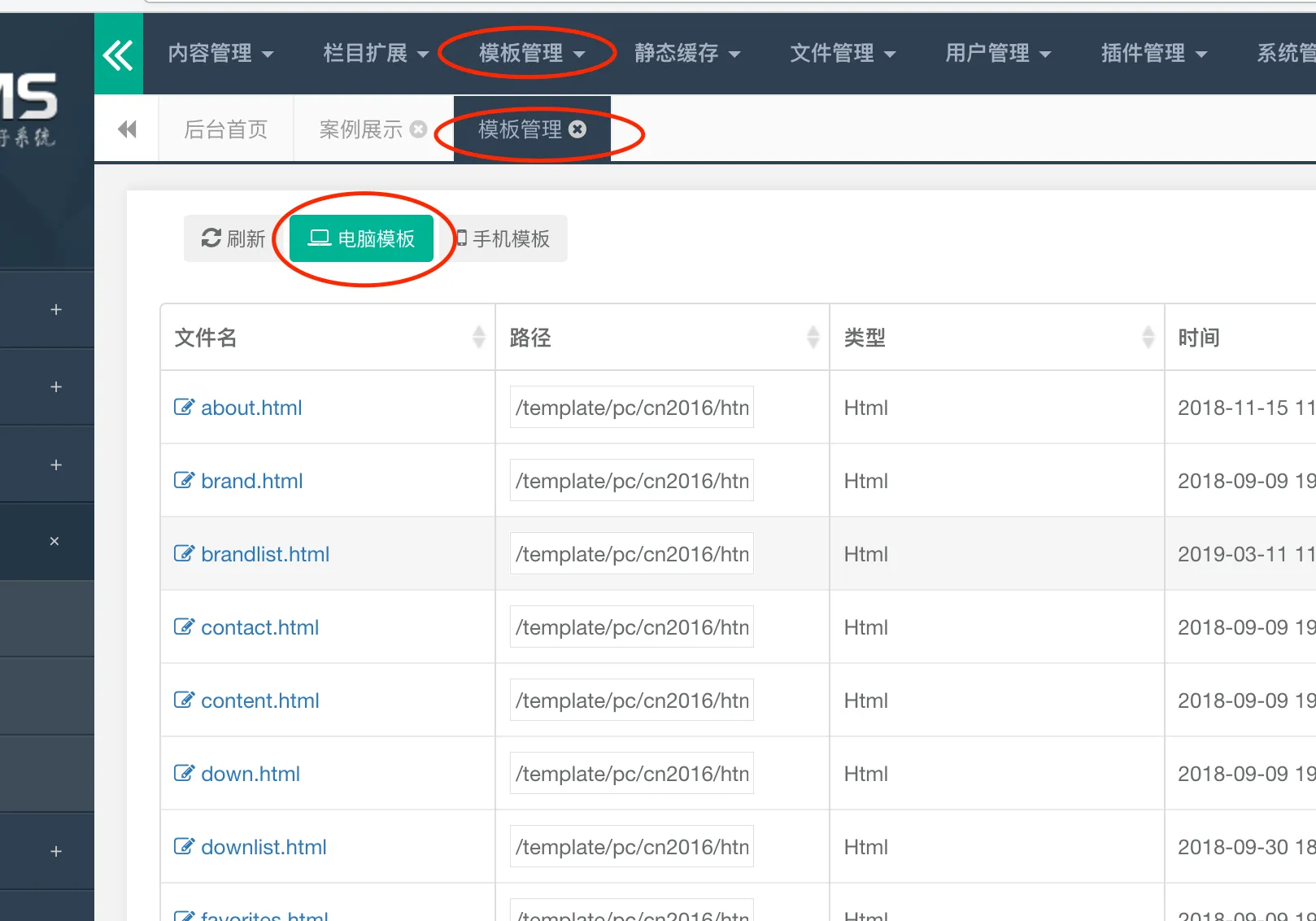 1.登录后台,找到模板管理,电脑模板